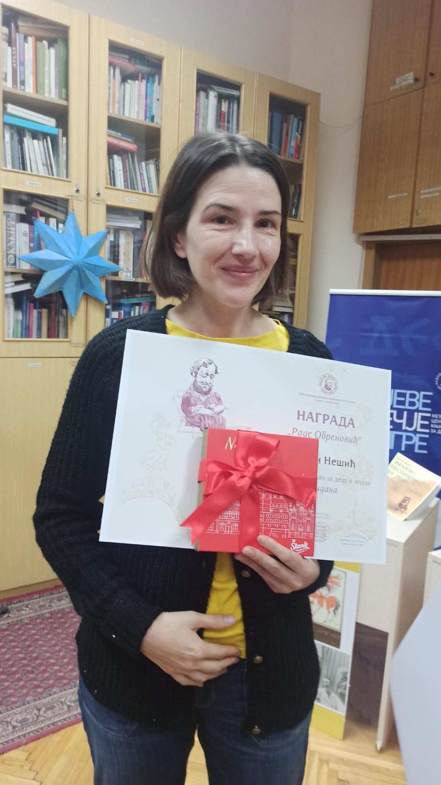 U petak, 5. decembra, svečano je uručena nagrada Zmajevih dečjih igara za najbolji roman za decu „Rade Obrenovićˮ ovogodišnjoj dobitnici Ivani Nešić za roman „Uzidanaˮ. Time je Ivana poslata trideseti dobitnik ove nagrade, a roman „Uzidana“ jedan od naših najnagrađivanijih izdanja!