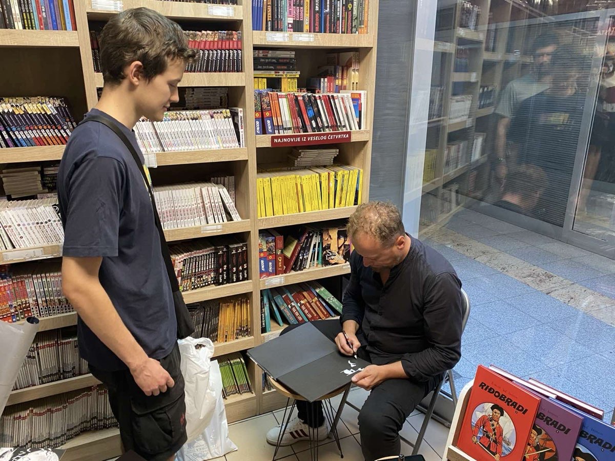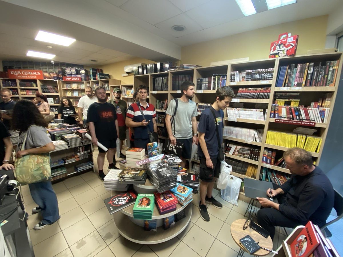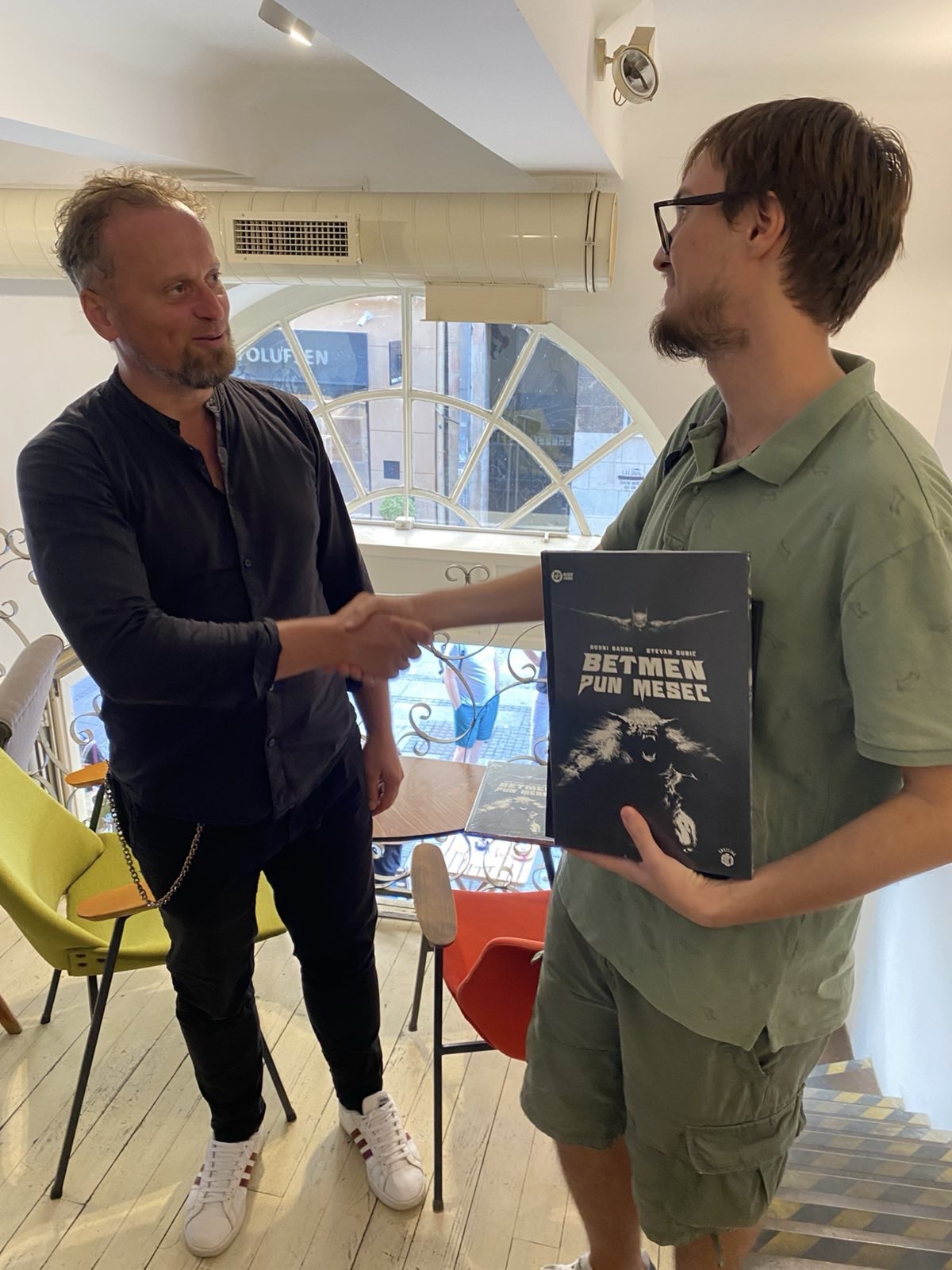 Od 13 časova, počela je i prodaja stripa „Betmen: Pun mesec“ u našoj knjižari u Dečanskoj 5, a Stevan Subić je, na zadovoljstvo svojih fanova, koji su se okupili u velikom broju, sa velikim entuzijazmom potpisivao primerke stripa i ćaskao s prisutnima.